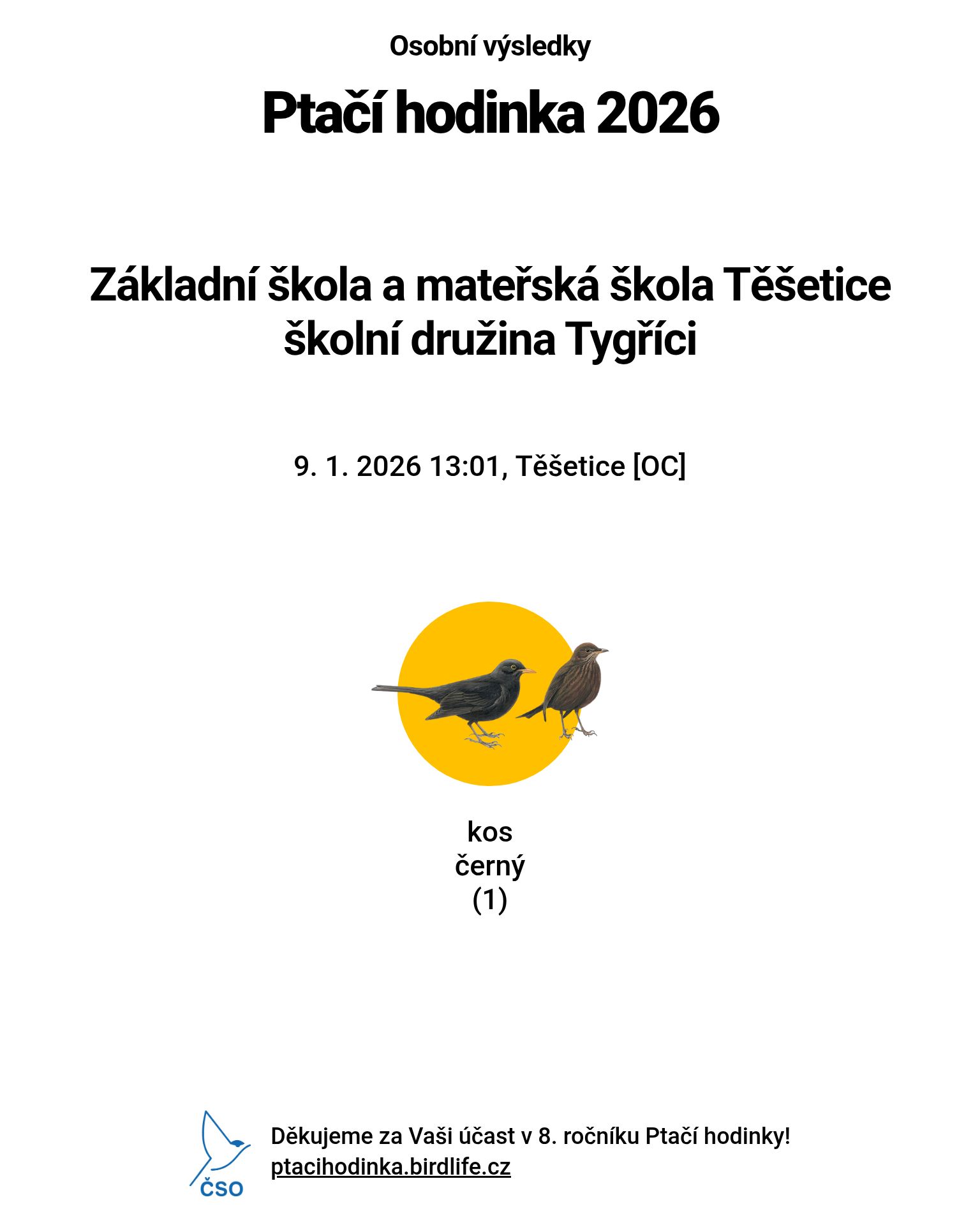 V lednu jsme se opět zapojili do tradičního sčítání ptactva, které organizuje Česká společnost ornitologická. Tato organizace každoročně provádí statistiky výskytu ptáků za pomoci dobrovolníků z celé republiky. I naši žáci se tak stali malými pozorovateli přírody a přispěli svým dílem k důležitému výzkumu.