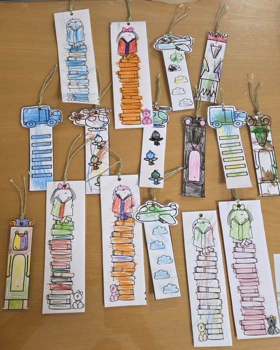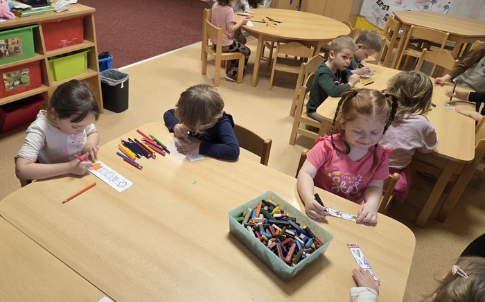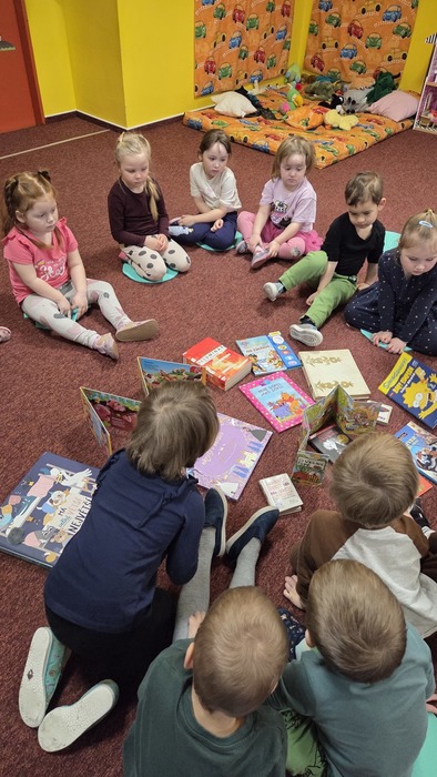 Děti se seznámily s různými knihami. Povídaly si o tom jak a z čeho se kniha vyrábí. Namalovaly si svou záložku do knihy a snažily se malovat a vyrábět svou knihu.