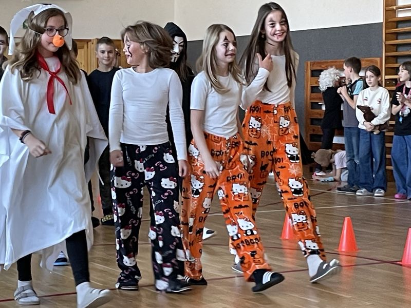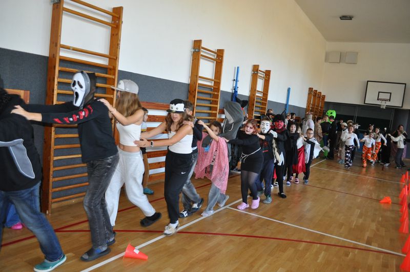 ... k nám do školy zavítal Halloween. Třetí vyučovací hodinu se celá škola sešla v tělocvičně a začala pravá párty. Třídní kolektivy se představily porotě, kterou tvořili žáci z parlamentu. Porota vybrala 5 nejlepších masek. Na závěr žáci svým potleskem hodnotili také dospěláky v maskách. Na plné čáře zvítězila paní učitelka 3. třídy- Zlata Zapletalová. Všem se akce líbila.